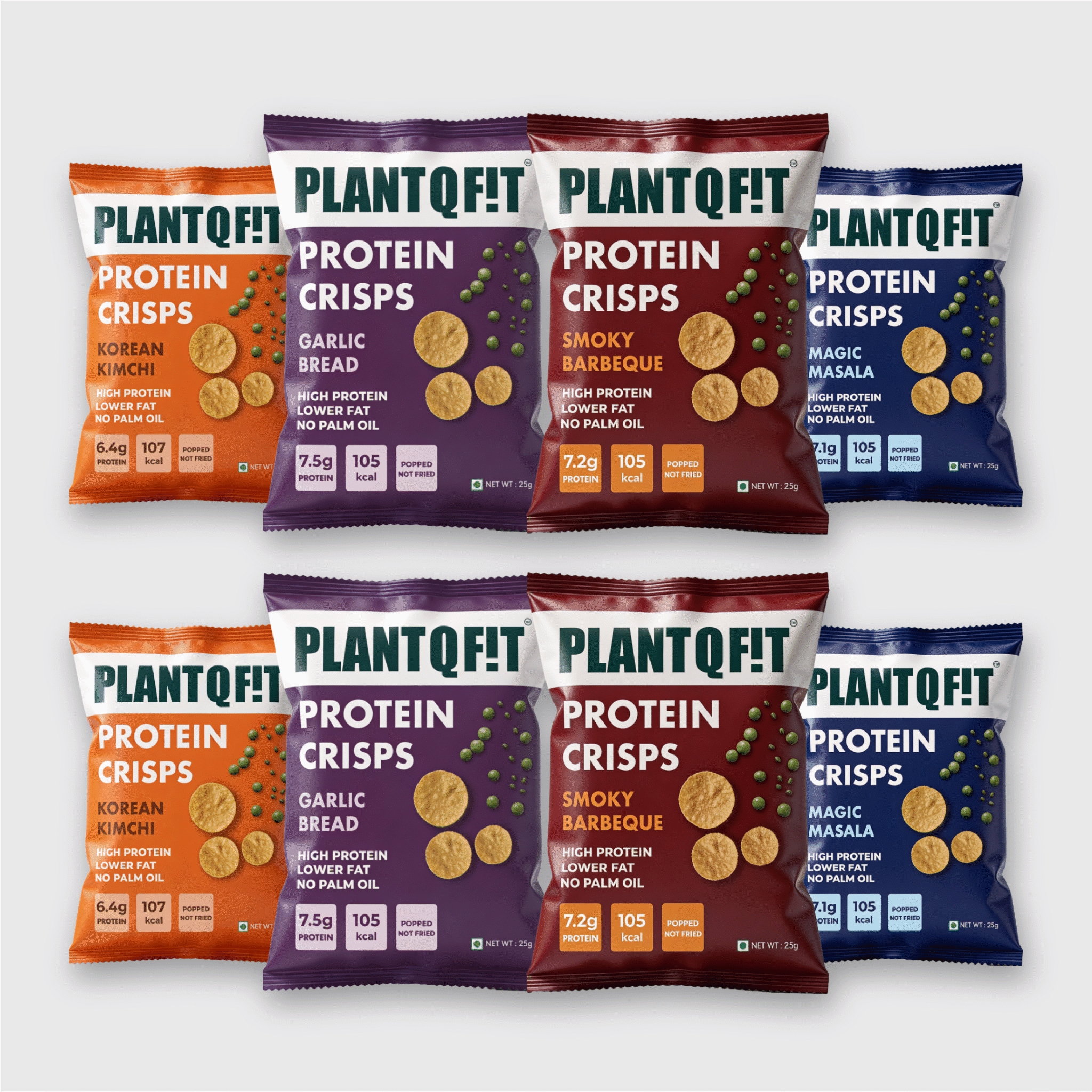 With 2 packs each of:• Smokey barbeque – a sweet & spicy kick• Korean Kimchi – a bold, tangy & fiery punch• Garlic Bread – cheesy, herby indulgence and Magic Masala – a chatpata, desi spice blast. This combo box is perfect for post-workout refueling, office munching, or guilt-free late-night snacking. Whether you’re chasing fitness goals or simply looking for a healthier crunch, PlantQFit keeps your macros balanced while satisfying your taste buds.